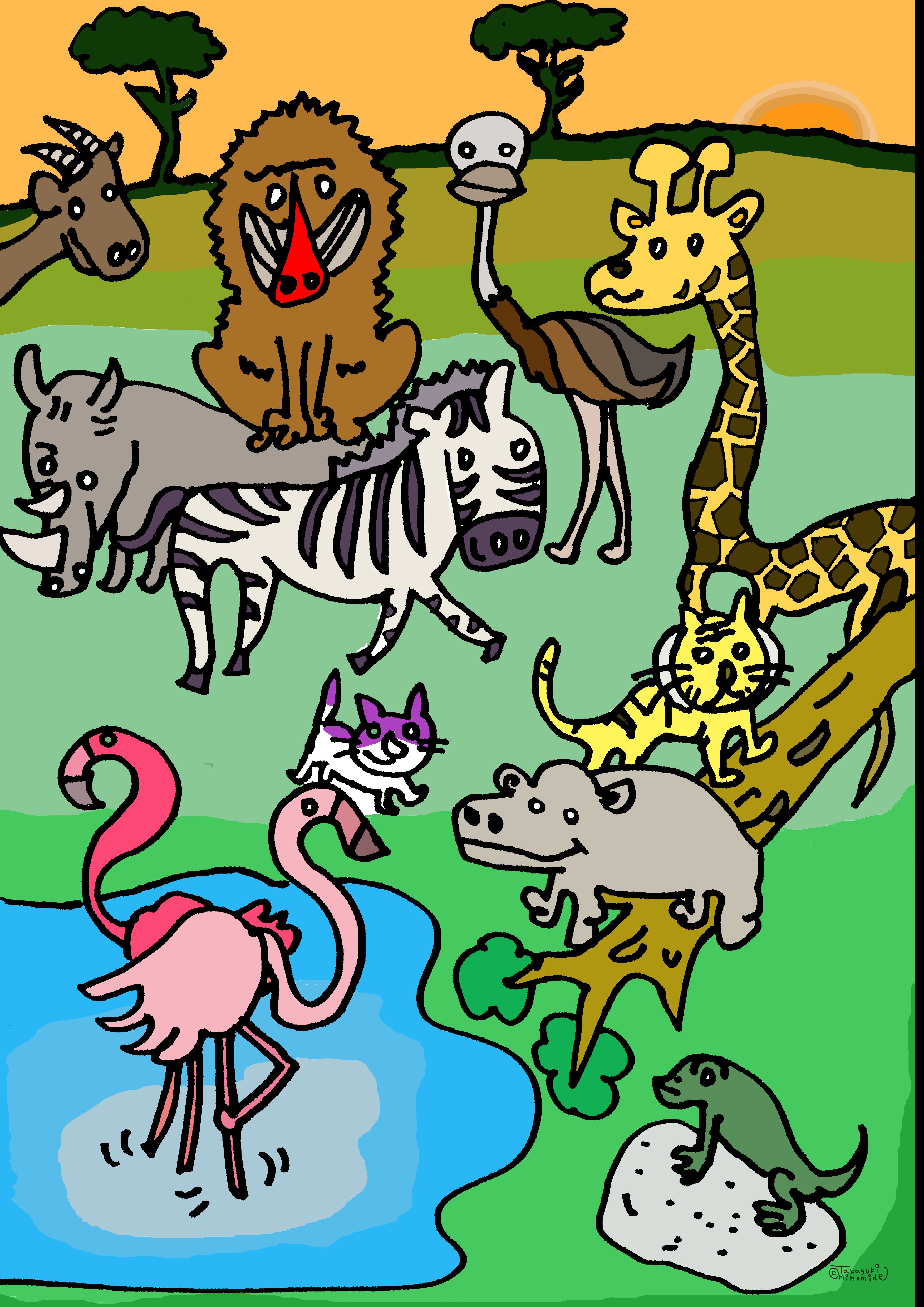 色とりどりの個性豊かな動物たちが描かれたマルシェバッグです!
